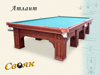Уникальный дизайн бильярдного стола Атлант позволит сочетаться ему с любым интерьером будь то классический дизайн или прогрессивный хайтек. Корпус стола изготовлен из твердых пород дерева, что придает ему солидность и долговечность. Предлагаемая гамма оттенков позволит гармонично вписать бильярд в любой элитный дизайн. Предлагаемые оттенки варьируются от светлого ореха до красного амаранта.