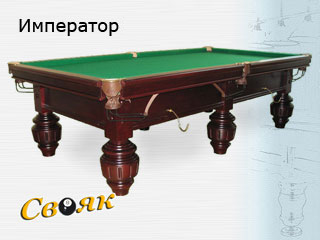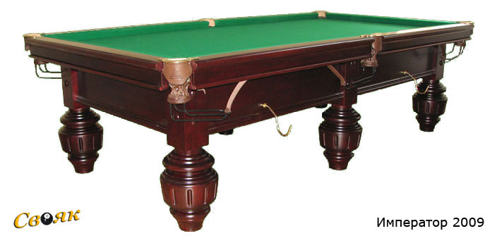 Размер стола от 8 до 12 футов. Изготовлен из натуральной древесины высшего сорта твёрдой породы — ясень, дуб на 8-ми, 6-ти, 4-х ногах (в зависимости от размера) без подпятников, что значительно улучшает игровые качества стола. Классическую форму стола подчёркивают точёные ножки с фрезеровками по всему диаметру, царги прямые. В основании игрового поля использована плита с природного камня (производства Италии, Китая). Сукно «Евроспринт» (производства Чехии). Лузы — латунные (высококачественное литьё под давлением) — кожаный самоскат или кожаный карман с фартуком. Столы укомплектованы профессиональной резиной. Предлагается комплектация аксессуарами известных мировых фирм.