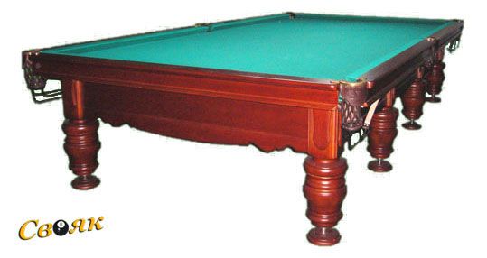 Бильярдный стол Аристократ на основе ардезии и дерева твёрдой породы. Природные материалы обеспечивающие прочность и долговечность. Лузы выполнены из латунной скобы и обтянуты кожей с классической нейлоновой сеткой в форме корзины. В комплектацию входит профессиональная резина. Размер стола соответствует любым требованиям и варьируется от 8 до 12 футов, комплектуется точёными ножками в количестве от 4 до 8. Ножки выполнены в виде прямых царг с фрезеровками и упираются в декоративные деревянные подпятники. Рабочая поверхность стола обтянута сукном Симонетто (Турция). Стол представлен в разных оттенках в зависимости от дерева — из ясеня, бука, ольхи.
